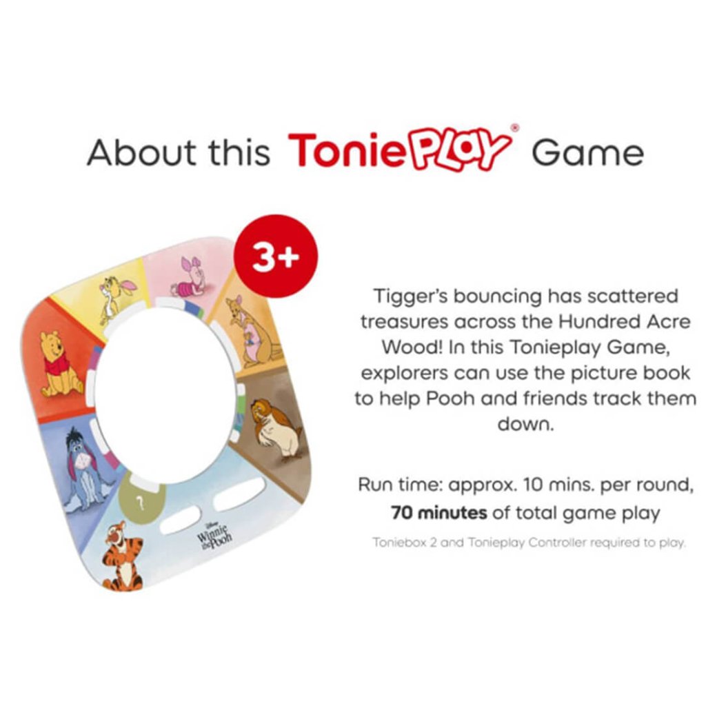 Tigger’s bouncing has scattered treasures across the Hundred Acre Wood! In this interactive Tonieplay Game for ages 3+, kids use the included picture book to help Pooh and friends find what’s been lost. With six sweet stories, 30 hidden objects, and a bonus song to unlock, this gentle, search-and-find game is full of classic Winnie the Pooh charm. Tonieplay unlocks new ways to play, only on Toniebox 2. Kids just pop the Tonieplay Disc and Controller onto the Toniebox 2 and let the hunt begin!