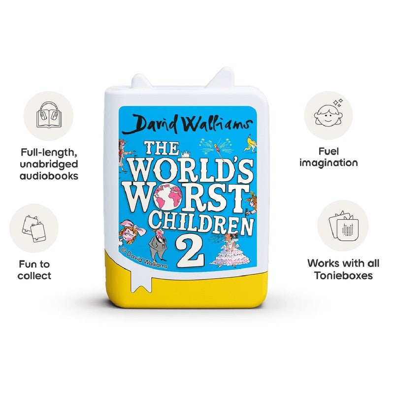 Have you met Gruesome Griselda, who nibbles on mouldy toast and bathes in slime? Or Competitive Colin, who turns even brushing his teeth into a race? In this second Tonie of terrible tales, David Walliams introduces ten more outrageously naughty children, each more hilariously horrid than the last. Marinated in mischief and mayhem, when your kiddos pop this Book Tonie on their Toniebox, they’ll be in for a disgustingly funny time. Based on the best-selling book by David Walliams.