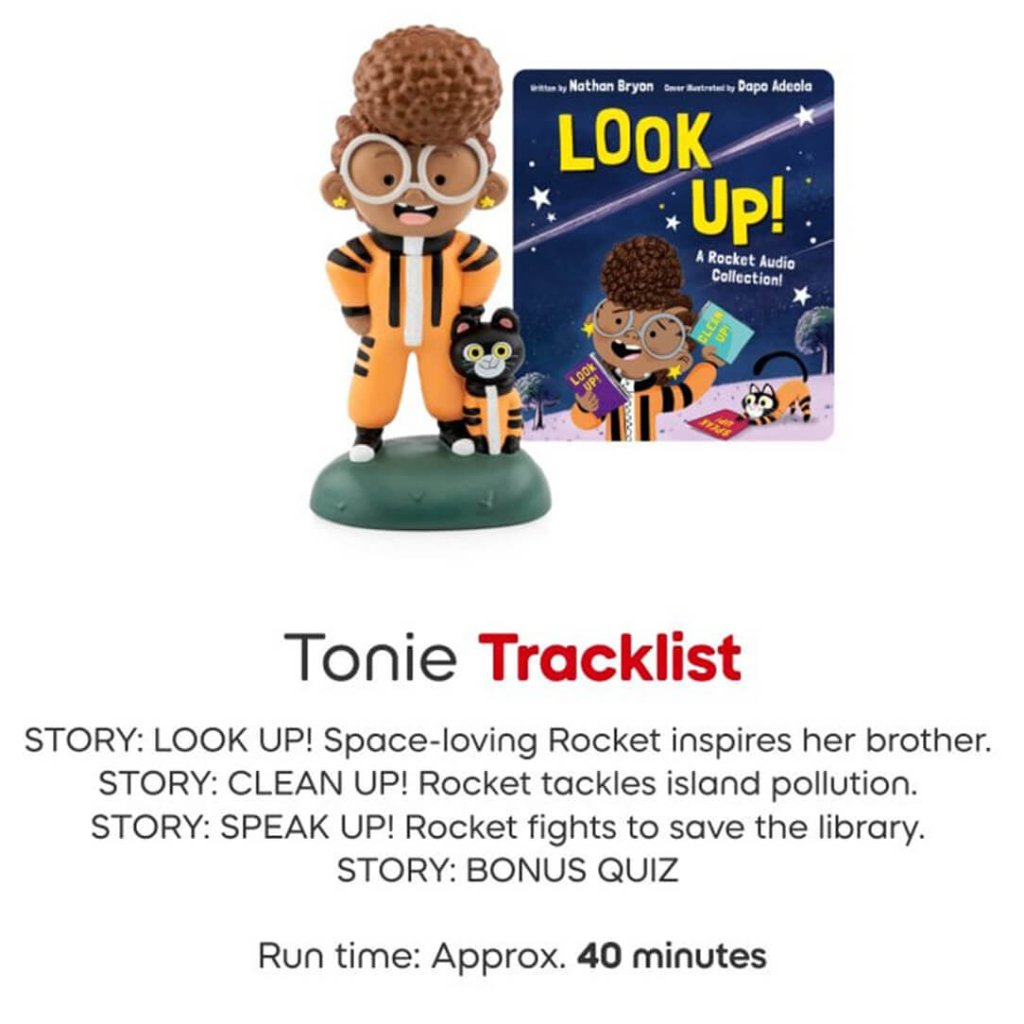 Rocket may be small but she’s full of big ideas and determination. From saving a Caribbean beach to protecting her local library or inspiring her brother to look at the stars, Rocket always speaks up and takes action (just like her hero Rosa Parks). With her love of science, books and the planet, she proves one passionate kid can change the world. Little eco warriors pop this Tonie on the Toniebox to explore Rocket’s world - and test their knowledge with a tonies® exclusive bonus quiz.