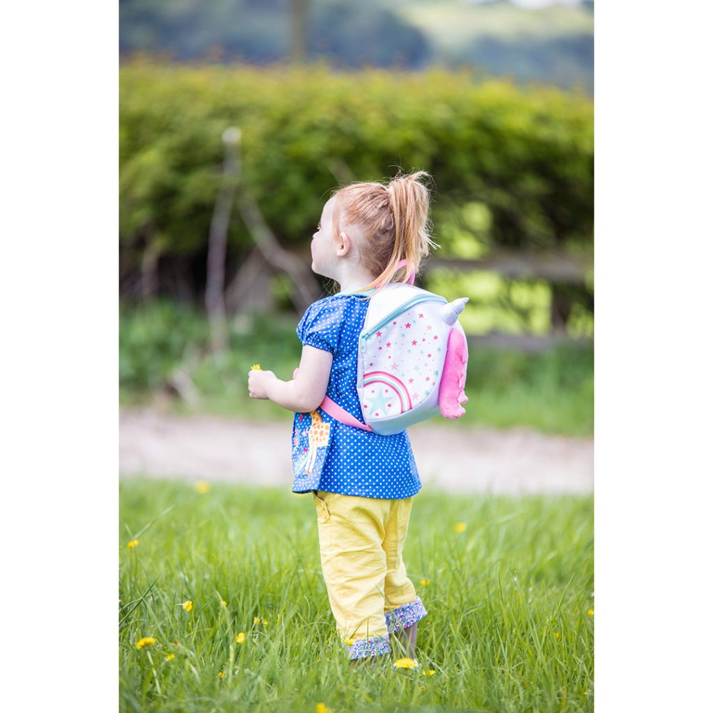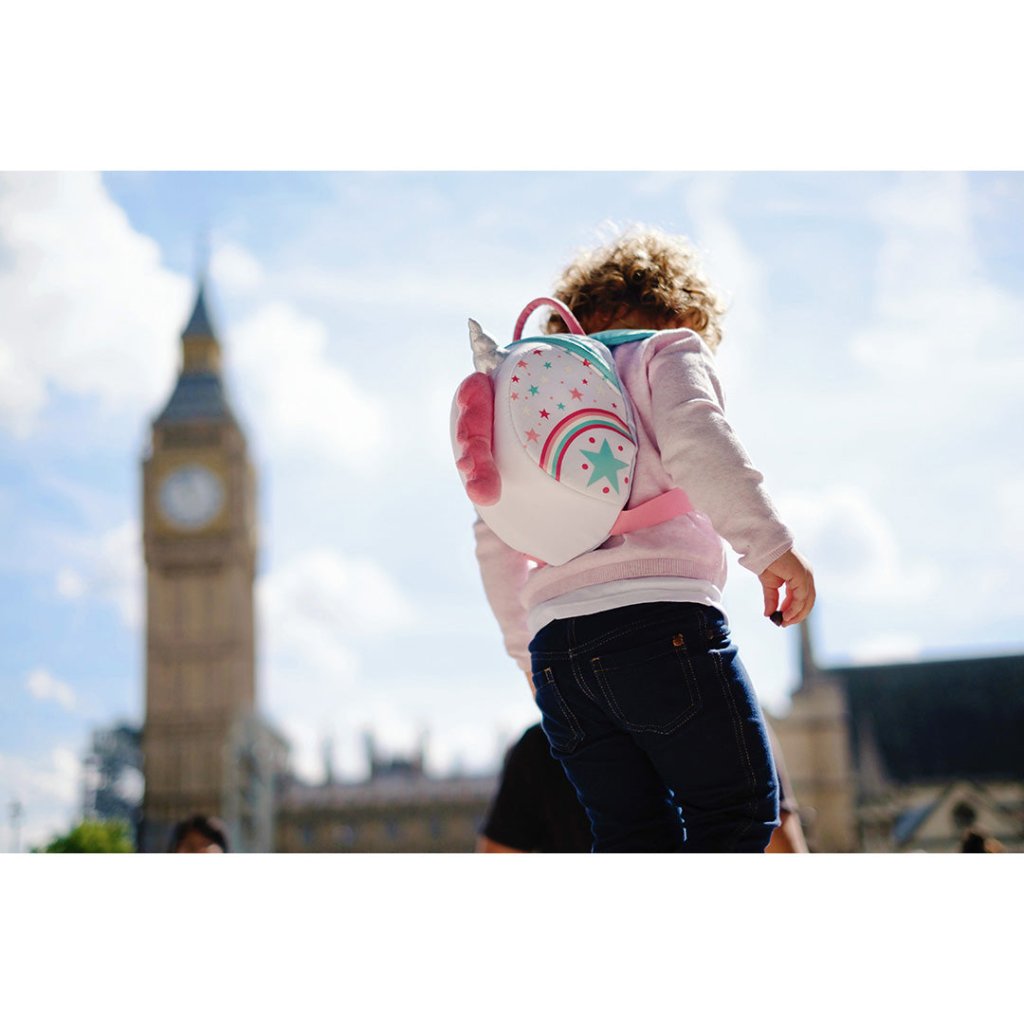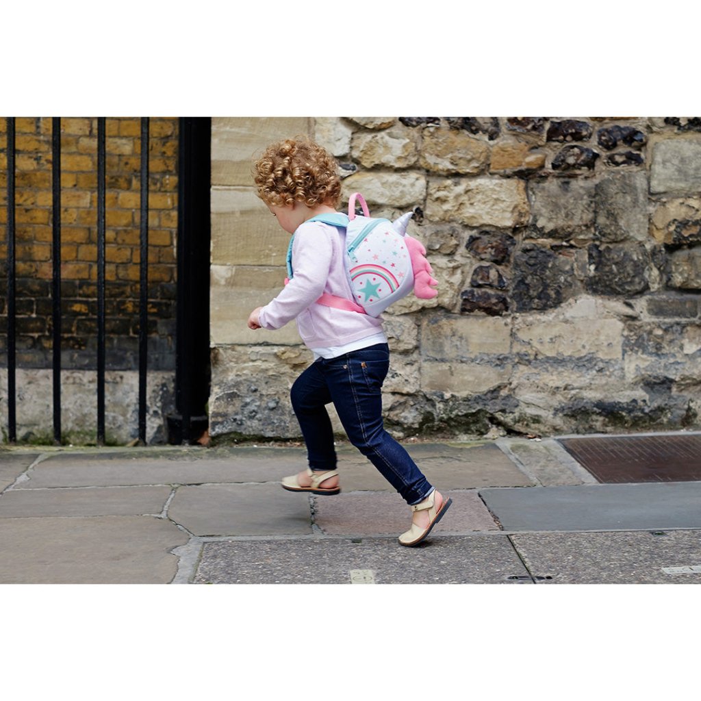 With a glittering horn and pink mane, the Unicorn backpack has all the dazzle and fantastical magic that a little one could want. There's plenty of room inside for carrying treasures and a removable safety rein to give parents control in busy places. The Unicorn design was dreamt up by our designer who drew inspiration from their little girl’s love for unicorns and all things that sparkle.