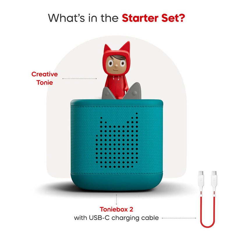 Toniebox 2 is the kid-powered audio player, made for ages 1-9+. No screens, no ads. Kids can dive into favourite stories and songs with an ever-growing crew of Tonie characters. Just pop one on the Toniebox and go! Or, unlock interactive games, quizzes, and challenges where they take the lead with Tonieplay. New bedtime features help them build better sleep habits. This Starter Set includes a Creative Tonie with space for up to 90 minutes of custom audio. Listen, play and grow in a whole new way.