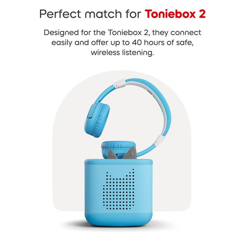 Go wireless with Bluetooth® Headphones, the perfect match for Toniebox 2. With easy NFC pairing, little listeners can enjoy up to 40 hours of wireless playtime. Designed with growing kids in mind, they feature a comfy adjustable fit, playful LED lights, and a safe volume limit of 85 dB. Available in five matching colours, they fold up neatly when not in use and include a wired option too. Big sound. No wires. Just Toniebox listening, with room to roam.