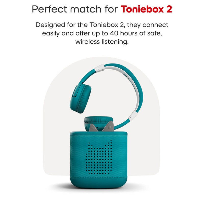 Go wireless with Bluetooth® Headphones, the perfect match for Toniebox 2. With easy NFC pairing, little listeners can enjoy up to 40 hours of wireless playtime. Designed with growing kids in mind, they feature a comfy adjustable fit, playful LED lights, and a safe volume limit of 85 dB. Available in five matching colours, they fold up neatly when not in use and include a wired option too. Big sound. No wires. Just Toniebox listening, with room to roam.
