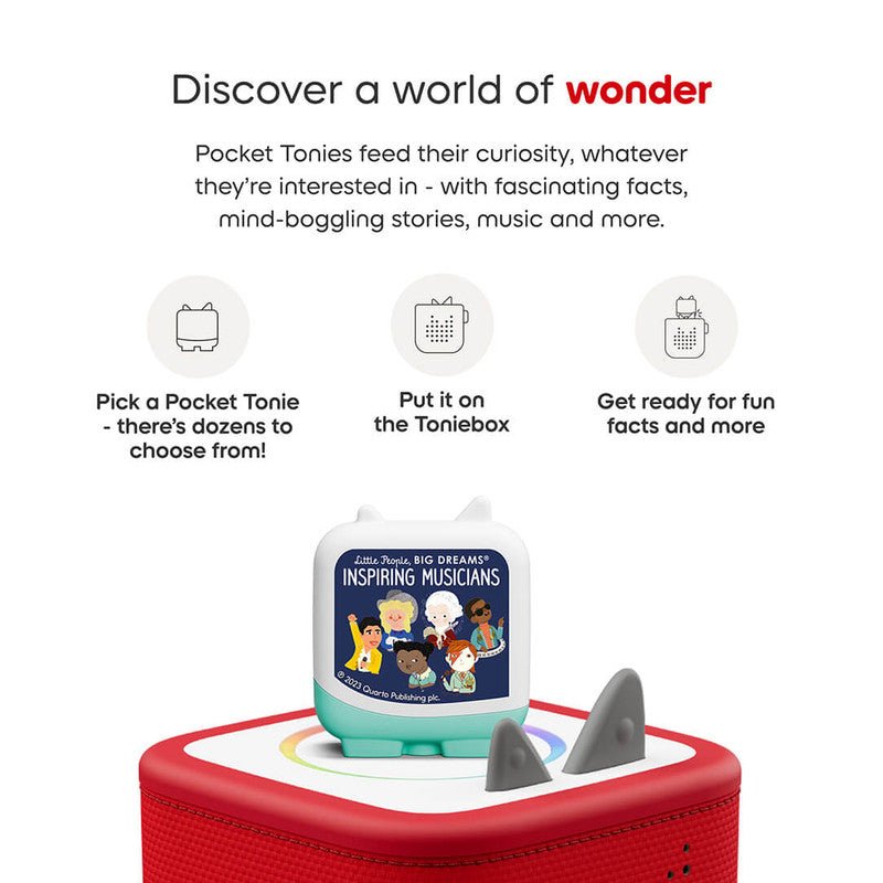 Before they were headlining Live Aid or lighting up the world stage, Ella Fitzgerald, Dolly Parton, Freddie Mercury and their contemporaries were just kids with a dream. From classical prodigies to rock icons, these inspiring stories reveal the early lives of music’s greatest stars. Part of the bestselling Little People, BIG DREAMS series, future stars need only pop this Tonie on their Toniebox to start rocking out with legends.